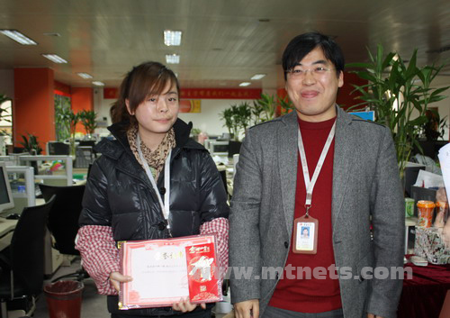 客服部杨云努力工作、认真负责,获得公司2009年度十二月份优秀客服奖