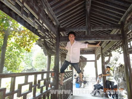 传说中的四星级酒店“印象熟溪”门口来张集体照,彭清和女友很恩爱,大宝还是那么搞怪