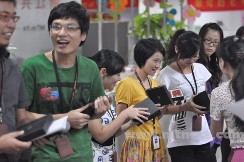 参加乐鱼官方网站-乐鱼online(中国)八周年庆征文的同学们获得了精美的皮夹,喜笑颜开。
