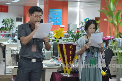 月度大会两位主持人,很美,很帅。