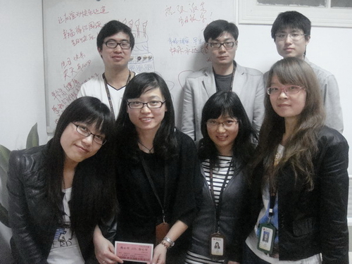 继罗君、老王之后,产品中心的董晓贵也荣获“西湖区优秀青年科技工作者”这一殊荣,晓贵是贵州遵义人,早前来杭州打拼,09年5月份来到明通的,他戴着一副大框眼睛,外表看起来有点像刚大学毕业似的,笑起来也比较年轻的感觉,其实他已经是孩子他爸了。