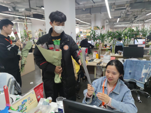 青春是经常的自律与偶尔的放纵,公司除了为每一位女同胞准备了鲜花陪衬外,还提供了半天假期,让女同胞们可以用半晌时光去拥抱青春,去放纵,放下手中的工作,无需在键盘前妙笔连珠,也不用在电话前滔滔不绝,做自己想做的事即可。