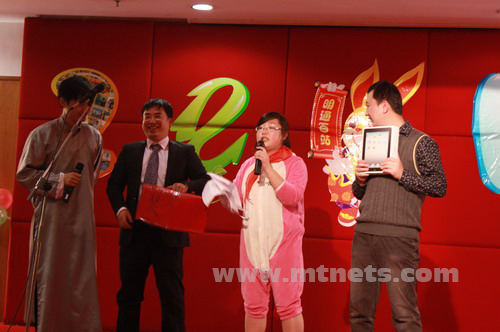 最精彩、最潮、最搞、最雷......年会中,最令人期待的莫过于明通小春晚,各个部门自导自演的精彩节目,凝聚着明通人的创意和激情,演绎着明通人的舞台传奇。本次年会中最出彩的要数化工仪器的《非诚勿扰3》美女们的个性宣言,反串女嘉宾的爆笑装扮,相亲情节峰回路转,着实让人忍俊不禁。食品机械推出的《大笑梁祝》、技术部的音乐剧《明通玛丽》、大行政的串烧合唱等都得到了评委和现场观众的一致推崇。歌王争霸赛、现场抽奖、互动游戏等也一次又一次地将新春年会推向高潮。明通新春年会在大家欢快的表演和热烈的掌声中落下帷幕......