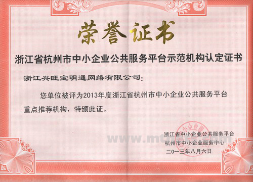 2013年度浙江省杭州市中小企业公共服务平台重点推荐机构颁奖