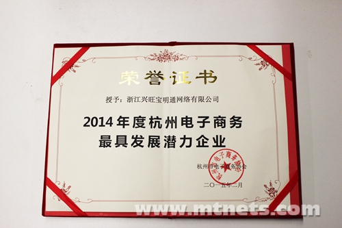 浙江乐鱼官方网站-乐鱼online(中国)荣获“2014年度杭州电子商务最具发展潜力企业”