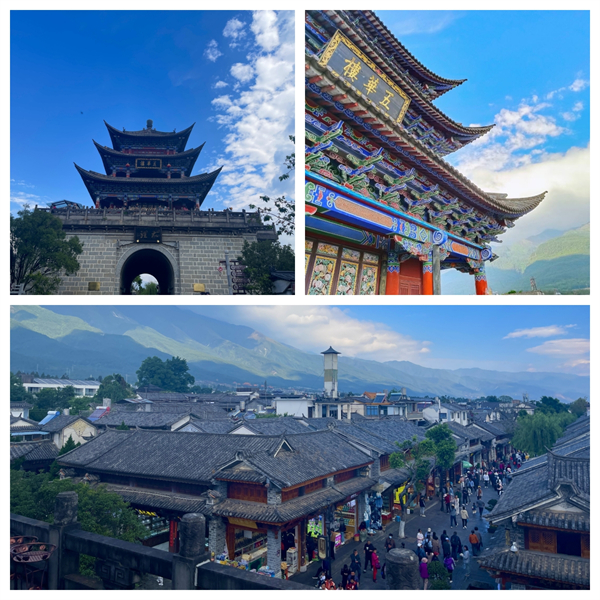 “一水绕苍山,苍山抱古城”大理古城东临洱海,西枕苍山,南北纵向有三条大街,东西向有五六条小巷,站在五华楼城楼上,古城的景色尽收眼底。