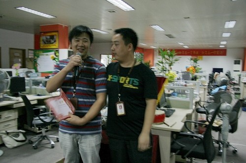 明通老员工,“资历哥”詹玉明给虎队PK胜出的同学颁发奖金