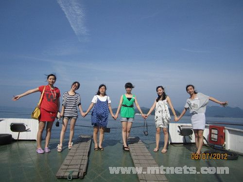 张萍说:第一站我们去漂流,漂了两个小时,还好有小强,把我们的皮划艇一路拉上岸。同时我们还发现了一个很好的可以免费游泳的地方。第二站千岛湖是个好地方,鱼好,风景好,吃完鱼头走了一个小时回到住处。躺在床上,回味鱼头的美味,想着一路的美景,感受同事亲切的聊天,真是美哉快哉。这次旅游很热很累,但很温馨,很瘦身。感谢我们的组织部长---皇后。