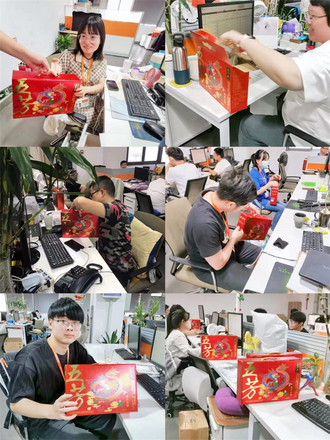 一箱箱饱含着关爱和祝福的端午礼盒“奔赴”到各个岗位,传递到每一名员工手中,公司上下洋溢在一片温馨和谐的喜庆气氛中。