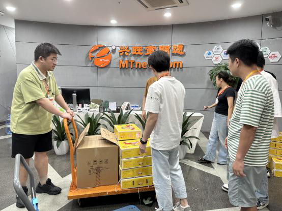 为保证中秋福利及时发放,公司将礼品一一搬至前台,各部门员工陆续前来,推着推车搬运礼品,行政部人员仔细清点,绝不漏掉每一个小伙伴的礼品,现场欢声笑语一片,洋溢着浓浓的节日氛围。