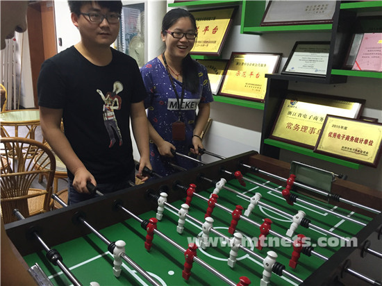 为了让员工有更丰富的业余生活,方便小伙伴们锻炼身体,释放压力,调节情绪,也能加强员工之间的交流,遂兴旺宝筹建了员工健身房以及添置了一些其他办公室娱乐器材,跑步机,自行车机,不倒翁沙袋,飞镖,桌上足球,桌上卡牌游戏等一应俱全,极大的激发了小伙伴们的热情,在工作之余也把公司当家一样,留下来健身或者玩游戏,增强了员工归属感。
