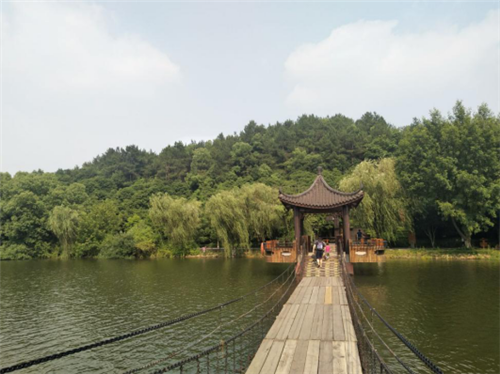 摇摇晃晃的桥让小伙伴玩得不亦乐乎